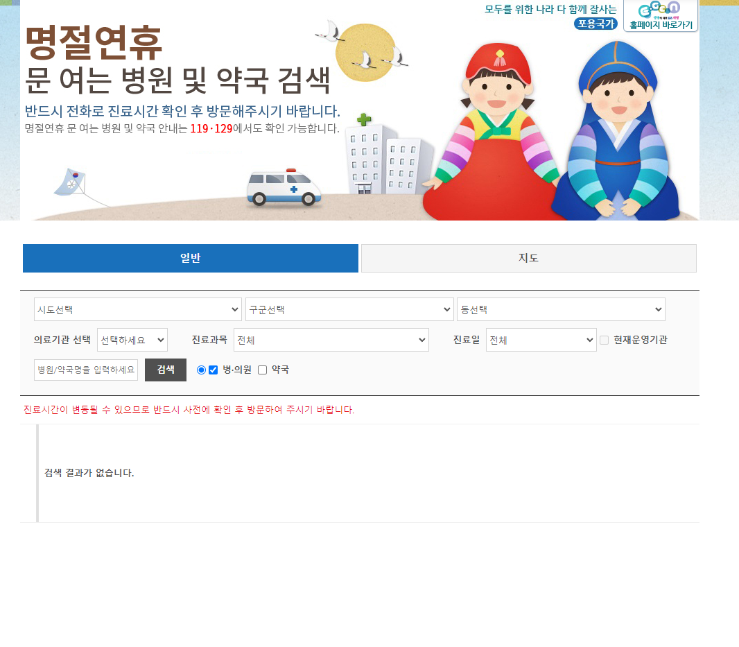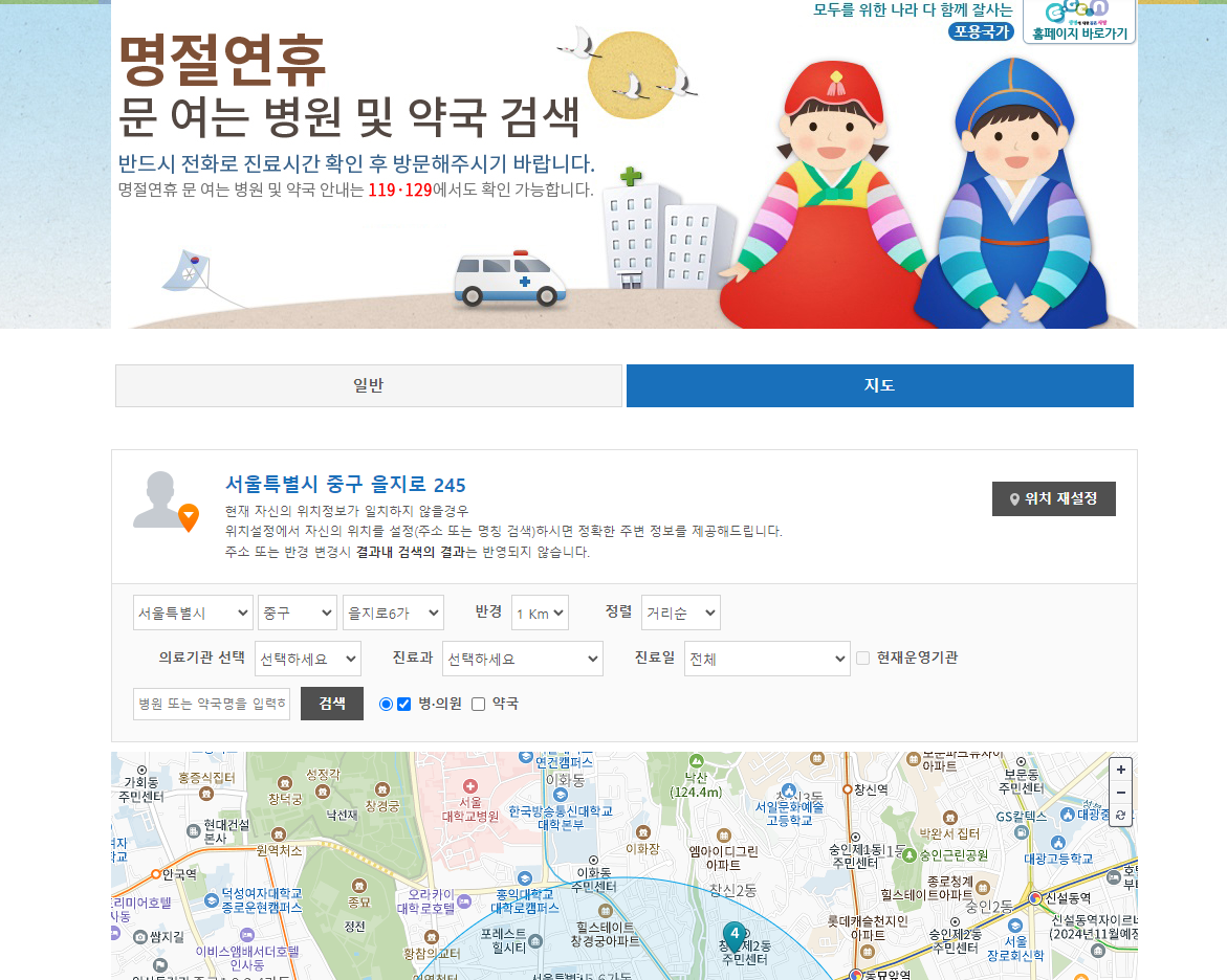 명절연휴 병의원·약국 비상진료 검색-지도 | E-GEN통합홈페이지