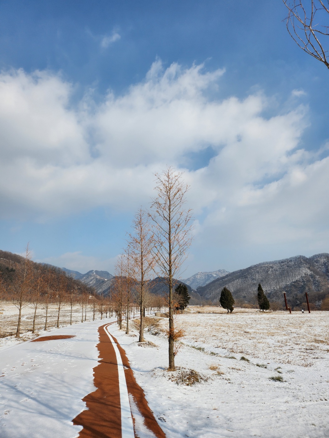 가는 길이 참 예뻤어요. 너무 추워서 누가 있을까 싶었지만 왠 걸요. 어르신 부부 즉 노부부 분들께서 다정하게 산책을 많이 나오셨어요. 의외였지만(진짜 추웠거든요. 귀가 떨어져 나갈 것 같다고들 하죠. 그런 곳에서 어르신들을 뵌 거라) 참 보기 좋았어요. 우리도 나중에 저렇게 낭만 있게 살자 하고 약속도 했었네요.