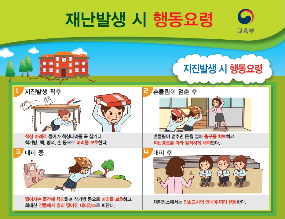 침착하고 안전하게 대처하기 위한 지진 발생 시 행동요령 같이 배워요!