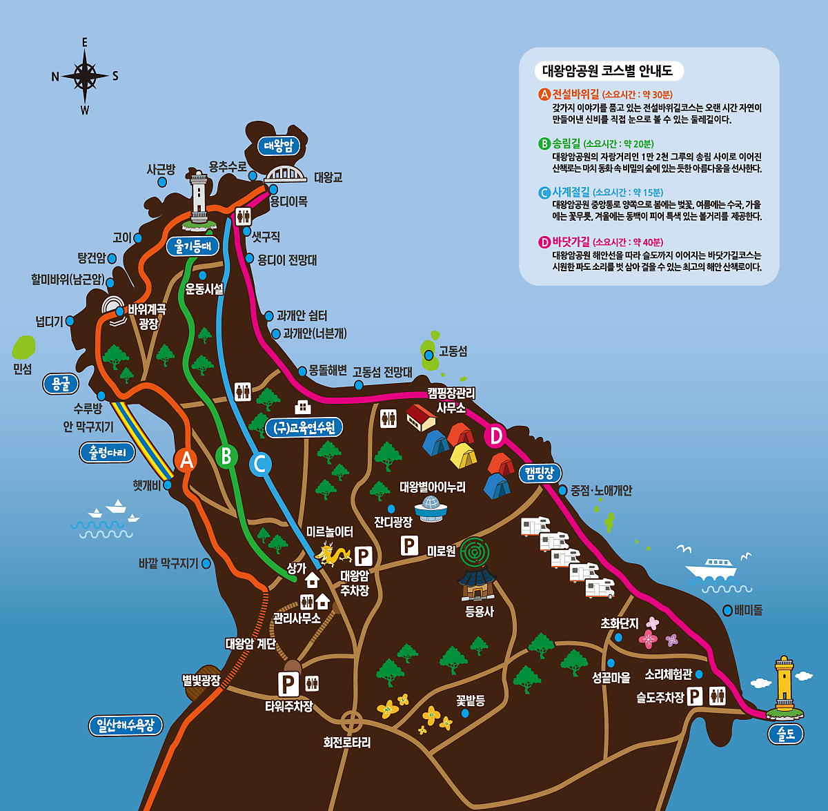 제주도는 성산일출봉 주변 해안도로를 드라이브 삼아 한 바퀴 돌아보셔도 좋고 국내 최대 규모의 용암 동굴인 만장굴도 좋습니다. 또 해발 50m의 나무다리로 만들어진 도보 다리인 용연 구름다리도 한번 걸어보심이 어떠실지요. 주변에 5일장도 있으니 구경 한 번 해보는 것도 좋습니다. 성산에서 우도로 들어가는 배편이 있는 것 아세요? 우도 들어가시는 것도 강추합니다. 우도 갔을 때 시간이 너무 빨리 가서 정말 아쉬웠었던 기억이 날 만큼 봐도 봐도 정말 아름다운 곳입니다.