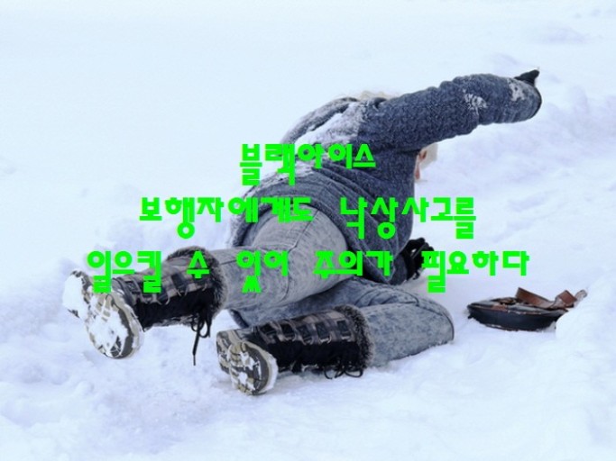 도로뿐 아니라 보행자의 보행 경로에도 만약 얼음이 형성된다면 특히 위험할 수 있습니다. 블랙아이스는 눈으로 쉽게 확인하기가 정말 어렵습니다. 도로 표면이 매우 매끄럽고 얇은 얼음으로 덮여 있어서 마치 도로 표면이 검은 색처럼 보이기 때문에 이 이름도 붙여진 이유입니다.