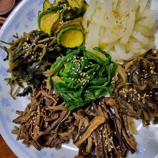 우리나라의 풍속에 보면 박,버섯,콩,순무,무잎,오이꼭지,가지껍질과 같은 각종 채소를 말려둔 것을 묵은 나물이라 하는데 정월대보름에 삶아서 먹으면 여름에 더위를 타지 않는다고 합니다. 오곡밥과 같이 들어가는 나물은 지역에 따라 종류가 달라지지만 보통 10가지의 나물을 준비합니다. 취나물, 고추나물, 삿갓나물처럼 산에서 채취하는 나물과 무청, 호박잎, 시래기 등 채소를 말린 나물을 먹는다. 묵은 나물은 아니지만 콩나물과 숙주나물을 먹기도 합니다.