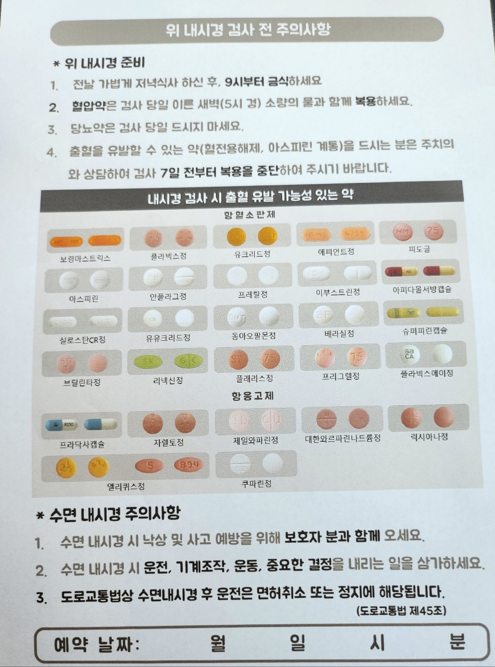 저는 위염이 있어 20대 때 받은 일반 내시경이 너무 괴로워서 이후로는 수면으로 받고 있는데요. 이번에도 수면을 예약을 해둔 상태예요. 그러면서 전달받은 주의사항이 있어서 마지막으로 알려드리고 물러나려고 합니다.