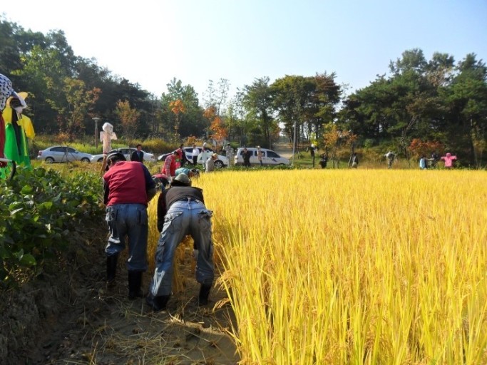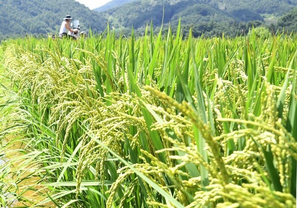 장마가 끝나고 날씨가 좋다 보니 벼가 자라는 것이 눈에 보일 정도로 성장 속도가 빠릅니다. 귀가 밝다고 알려진 개가 벼가 자라는 소리를 들을 수 있을 정도라고 약간 과장된 표현이긴 하지만 그랬다고 합니다.